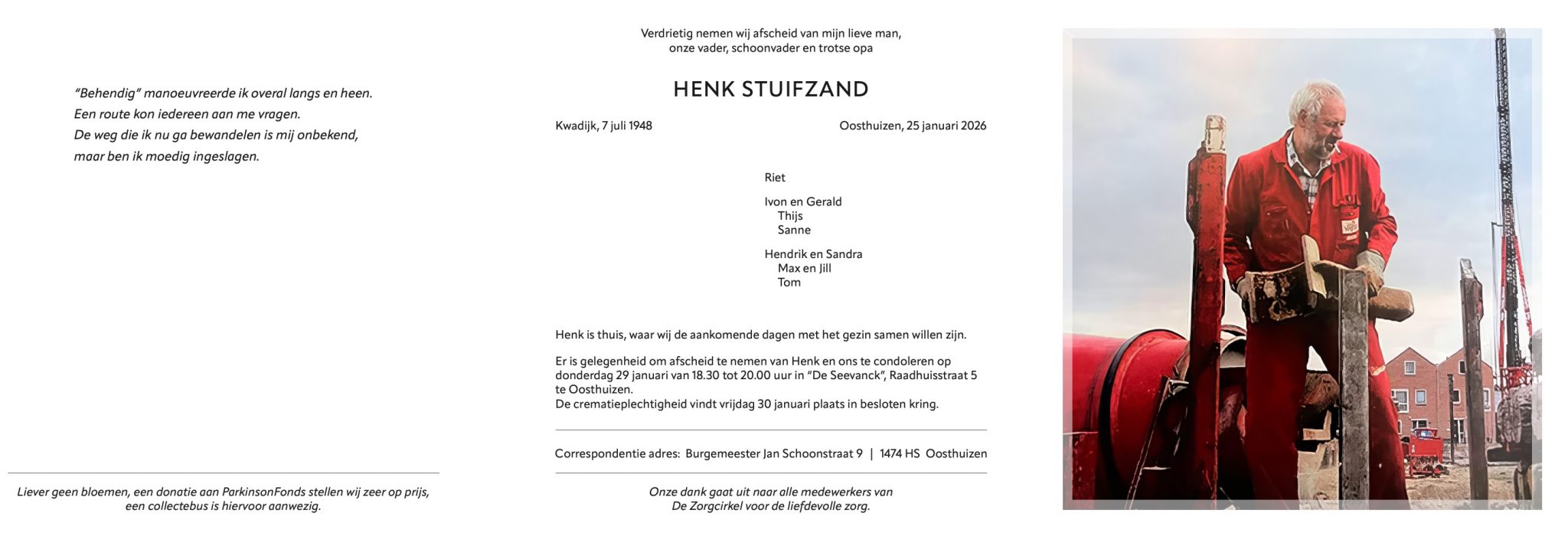 Afgelopen weekeinde ontving de vereniging het droevige bericht dat één van onze trouwe supporters en zeer gewaardeerde medewerker Onderhoud, Henk Stuifzand is overleden. Wij zullen hem ons herinneren als een grote, goedmoedige en goedlachse man die enorm genoot van het onderhouden van ons complex samen met de andere ‘oudjes’.